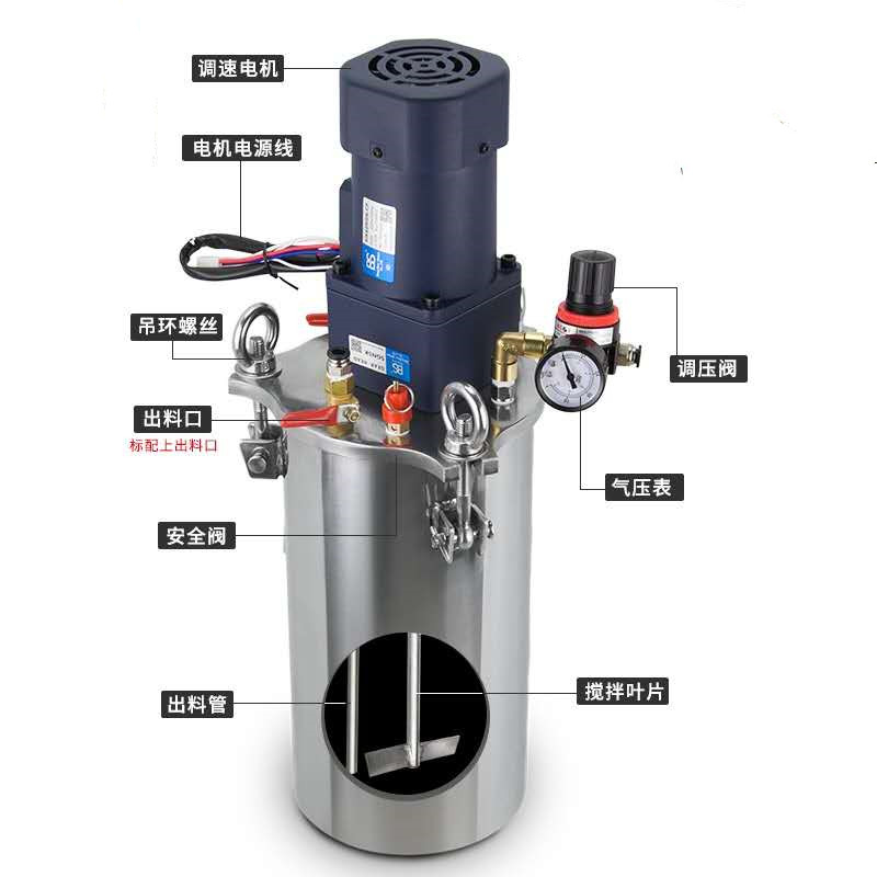 壓力桶出膠方式:上部蓋子,底側,底部,根據膠水的粘稠度選擇。